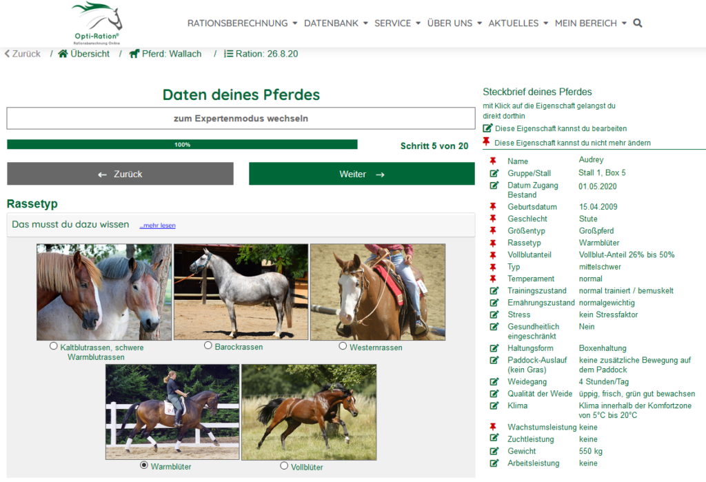Du kennst dich bereits gut mit Opti-Ration® aus? Dann geht für dich die Eingabe der Eigenschaften des Pferdes deut­lich schneller: